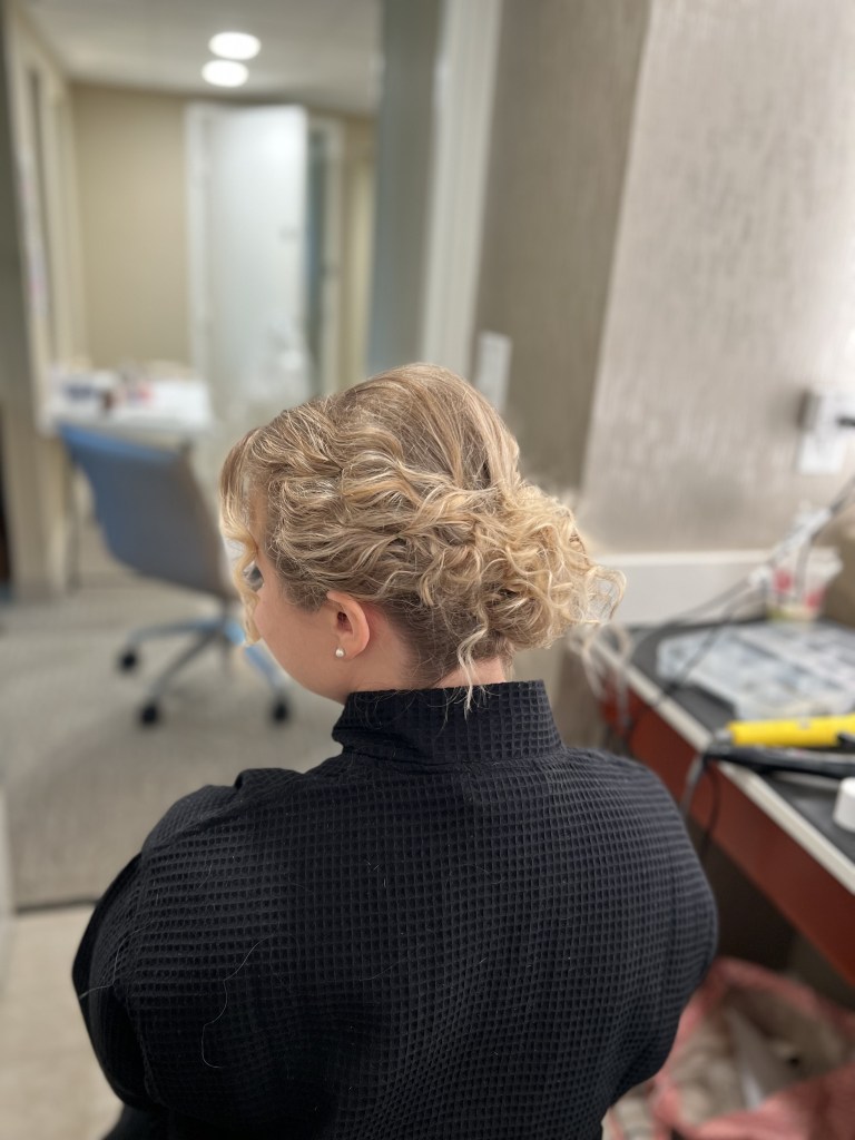 ” Paige did hair and makeup for my wedding – my mother, my daughter, and me. She was prompt and very friendly, and our experience was great for both the practice appt, { trial } , and the wedding day. We were all three very happy with our hair and makeup, and it looked great all day. Very happy with her service! “